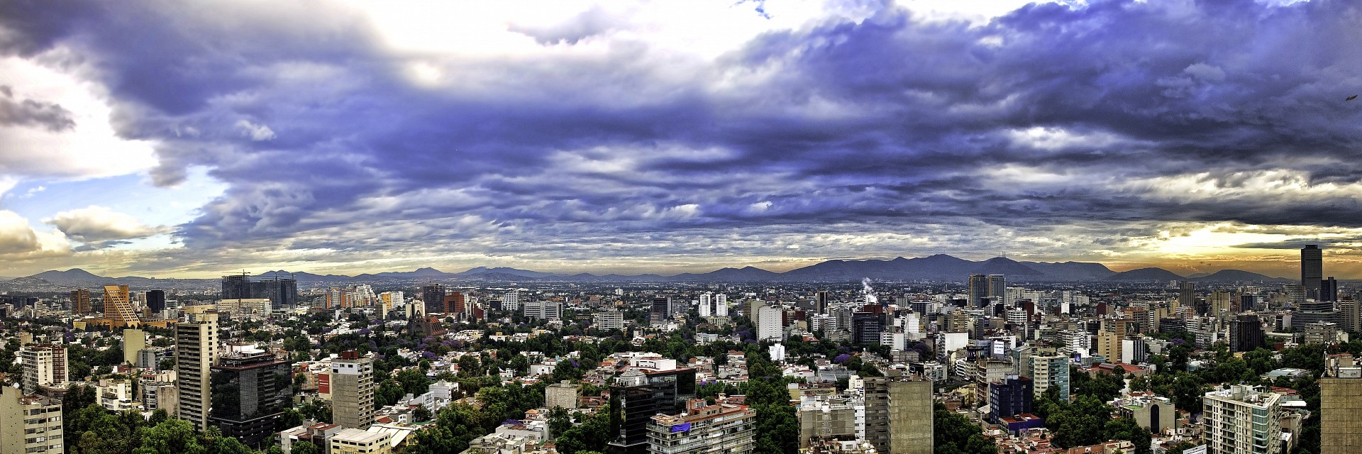 Figure 2.1 This panoramic aerial shot of Mexico City gives us a view of the sprawling area this city of 21.7 million people inhabits, which makes it the most inhabited city in the Western Hemisphere. Stories tell that the Mexicas (Aztecs) built Tenochtitlan in Lake Texcoco after one of their prophecies came true (Eagle eating a snake while perched on a cactus on an island in the lake). Hernan Cortes in 1520 conquered Tenochtitlan and built Mexico City on the ruins of this Aztec city.
