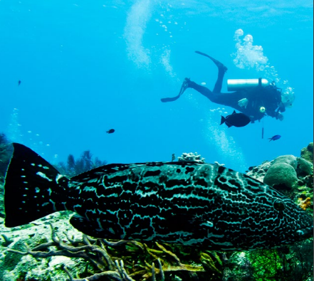 Figure 5.1 In this image we can see a man snorkeling among several fish thriving in a coral reef off the coast of Isla Cozumel (this location is known for its excellent environment for diving). Snorkeling is a common activity you will find among the coastal cities of Mexico, especially by the resorts.