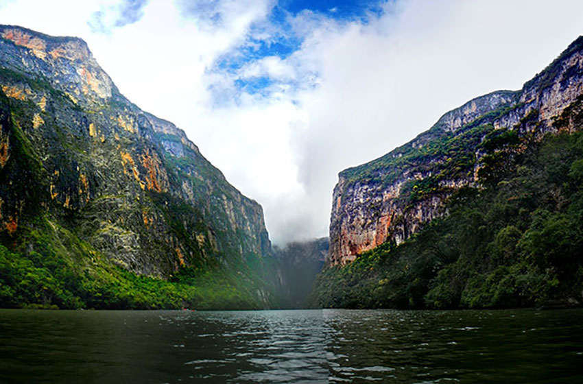 Figure 1.1 Located in the Mexican state of Chiapas, this canyons formation started approximately around the same time as the United States' Grand Canyon in Arizona around 35 million years ago. The canyon formed from the erosion of Grijalva River, which continues to flow through the canyon. The canyon walls are at high as 1,000m with some being straight 90-degree verticals and stretching a distance of 13km. In this canyon you can find 30 rapids, five waterfalls, three beaches, two freshwaters springs, and a cofferdam. You will also find Cueva de Colores; this name comes from the filtration of magnesium, potassium and other minerals that give the walls its colors.