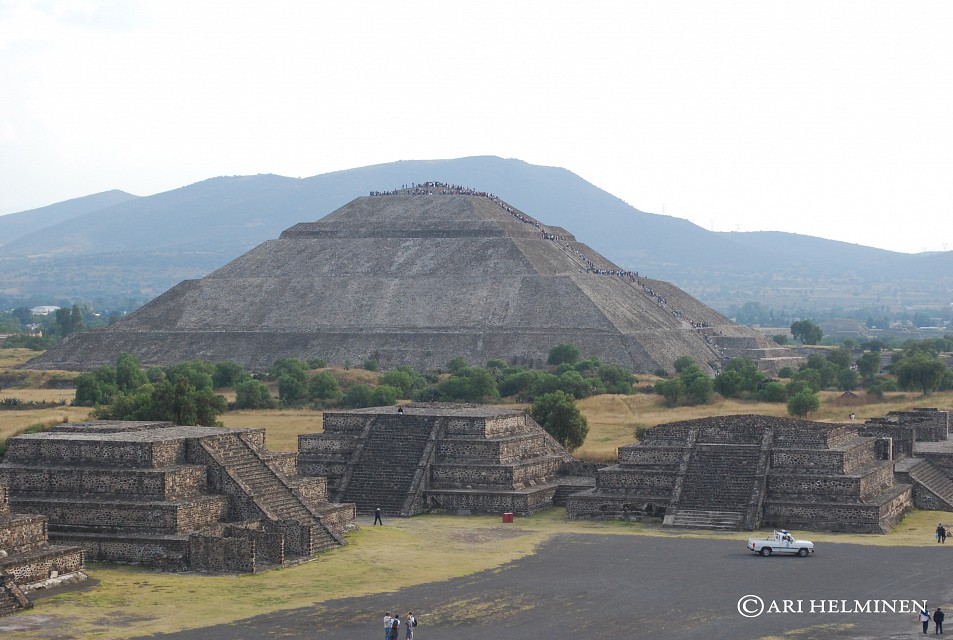 Figure 3.3 Approximately 40km from modern day Mexico City, Teotihuacan is architecturally significant because of the city's size, pyramids, and complex compounds and artwork. It's believed that Teotihuacan was the largest Pre-Columbian city in the Americas with a population of 125,000 people and was possibly a multi-ethic state. Teotihuacan covers 8 square miles of land. In this image you can see the Pyramid of the Sun; little is known about the importance of this pyramid or what its purpose was for as over the centuries looting and natural decay have removed much. Some hypothesis that it venerated a deity, but little evidence has been found to support this.