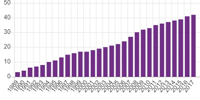 The reason I am sharing this bar graph is because it shows over the course of 28 years, the percentage of US Passport holders has increased from 10% in 1994 to approximately 42% in 2017. When viewing this graph, I believe it shows the changing dynamic of US citizens and their views on world travel, but also that more Americans now can afford these trips than they could back in 1994.